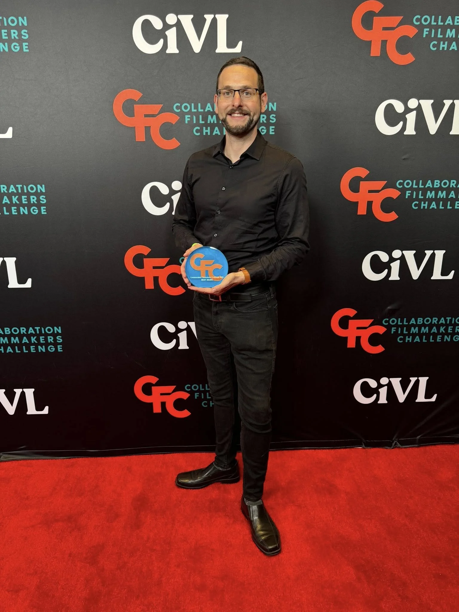 In May 2025, I returned to the Director's Chair, after a 7 year hiatus. I was approached by my good friend and creative collaborator, Johnny Cannizzaro, with an idea for a short film for CFC 2025 (Collaboration Filmmakers Challenge). At first, all he knew is he wanted to play the piano, and he had exclusive access to a historical location in Hollywood with an old piano he could play. With a tight two week deadline for the competition, we quickly got to work on the project. In a matter of just a few days, Johnny wrote a stellar script, which was both emotional and uplifting. I quickly brought on my long time trusted friend and creative partner Chris Courtner, to Line Produce the project and help up us crew up. We quickly put together a casting call for our lead actress for the role of Ruby, and we were overwhelmed with many actresses interested. I allowed Johnny to make the casting decision, but thankfully we agreed on our choice. At the same time, we were furiously making crew calls for any and all positions on set. It was a mad rush, but we pulled it off.In less than a week, we were on set, cameras rolling, shooting the film with a full crew. It was a one day shoot in the heart of Hollywood, and it went very smoothly. The next thing we knew, we were deep into post-production. My specialty - editing, and I was off cutting the film with Johnny by my side every step of the way. The first cut was 10 minutes, and my producer Chris told me it was way too long and needs to be cut down. Johnny and I took two more days to cut it down to 6 minutes 30 seconds to meet the CFC time limit - it was not easy, and we sacrificed MANY lines Johnny truly missed, but ultimately it made the film better, tighter, and stronger. I don't think Middle C would have made it as far as it did had we not cut it down so aggressively.By the time we had reached picture lock, we had only 3 days to color, score and sound mix the film. The was no time for delays, and every second counted. We brought on our insanely talented composer Pietro to score the ending of the film, and we had a stellar colorist and sound mixer that elevated the entire narrative. Finally, it was pencils down, and time to submit.The competition for CFC 2025 was fierce - there were 126 films submitted to the competition, a record, and only 16 were selected to screen. Middle C was the judge's 16th choice. We got in, but just barely.Middle C screened at the Samuel Goldwyn Theater in Beverly Hills at 7pm on June 27th, 2025, in front of hundreds of people. The crowd was cheering us on as the film started playing, and Johnny was very recognizable to many in the crowd. We ended up winning BEST MUSIC award, which we were certainly not expecting. It was a night for the history books, and Johnny and I left the night feeling very inspired to make more films soon. More to come!