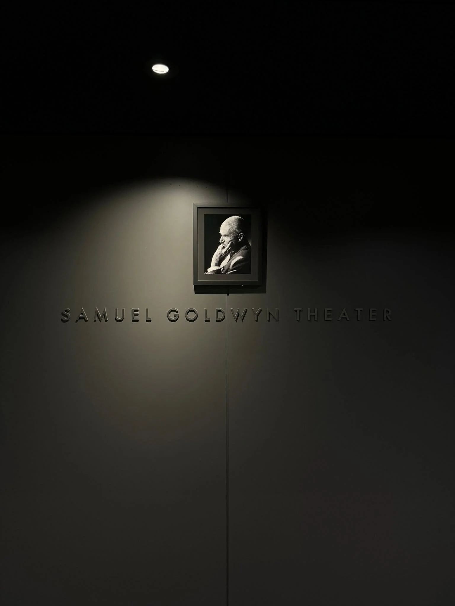 on stage, inside the samuel goldwyn theater in beverly hills.